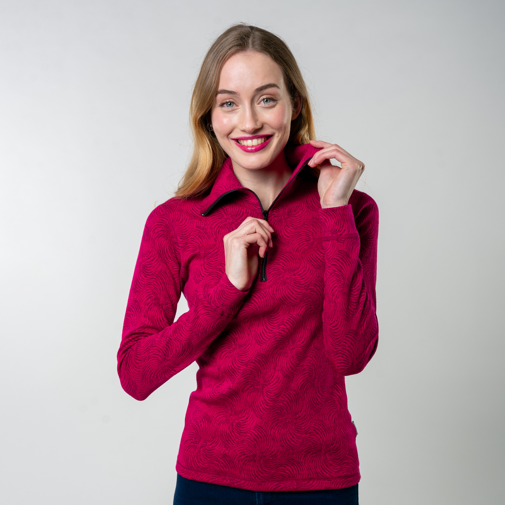 Hřejivé, hebké a designové zároveň. Dvouvrstvý úplet Merino Moira patří k těm nejprodávanějším. Kombinuje totiž efektní design vyplétaného vzoru s tepelnou pohodou a neuvěřitelnou hebkostí, na níž vzniká doslova závislost. Vrchní vrstvu tvoří nejjemnější Merino vlna o síle 16,5 mikronů se skvělými termoizolačními vlastnostmi. Vnitřní strana z nejjemnějších mikrovláken odděluje horní vlněnou vrstvu od pokožky. Hodí se proto i pro ženy, kterým je 100% vlna přímo na těle nepříjemná. Hodí se jako první či druhá vrstva oblečení a díky působivému žakárovému vzoru krásně vypadá nejen při sportu, ale při běžném nošení.