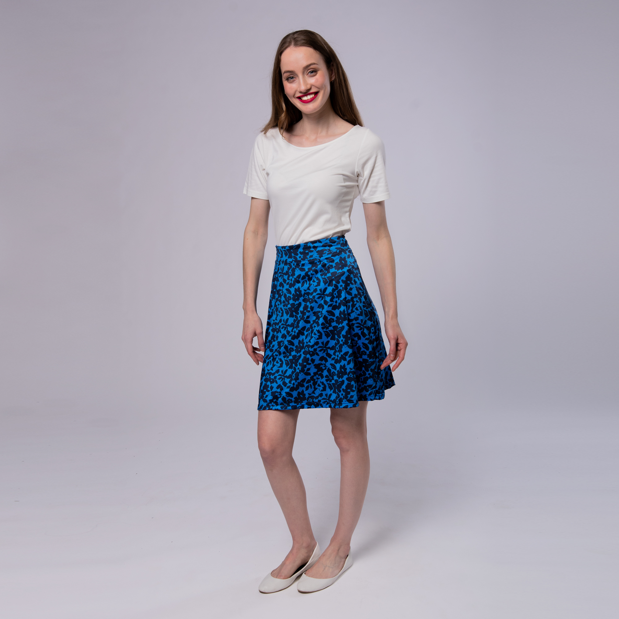 Lehká vzorovaná sukně z kvalitní italské látky dokonale podtrhne Vaše ženské křivky, ale zároveň nikde netáhne a nezařezává se. Materiál je na léto jedna báseň, takže se v ní celý den budete cítit a taky vypadat báječně.