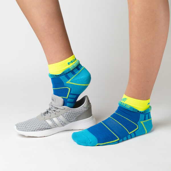 Architektura ponožek určených pro běžecké sporty uplatňuje všechny dostupné poznatky podporující ideální funkci nohy. Špičku a patu ponožky spojují plastické segmenty plyšové vazby příznivě stimulující chodidlo. Systém segmentů MFC ( Moira foot canals) tlumí nárazy přenášené na chodidlo a zároveň tvoří soustavu větracích kanálků. Při každém došlapu je tak chodidlo nuceně odvětráváno, aniž by bylo třeba mít ponožku zvlášť pro pravou, či levou nohu. Nárt je vybaven klimatizační zónou s elastickou bandáží uprostřed, která obepíná chodidlo a brání nežádoucím posunům ponožky. Ventilační pruh pod prsty nohy, který navazuje na klimatizační zónu nártu, usnadňuje pohyb prstů. Horní část nártu pod lemem ponožky je vylehčena hladkými proužky usnadňujícími ohyb nohy. Pod ukončením ponožky je napleten ochranný lem, který jako štít zabraňuje při běhu vnikání drobných kamínků do boty. Ochranný lem překrývá botu a funguje jako „ucpávka“. Ponožka je ukončena dvojitým lemem.
