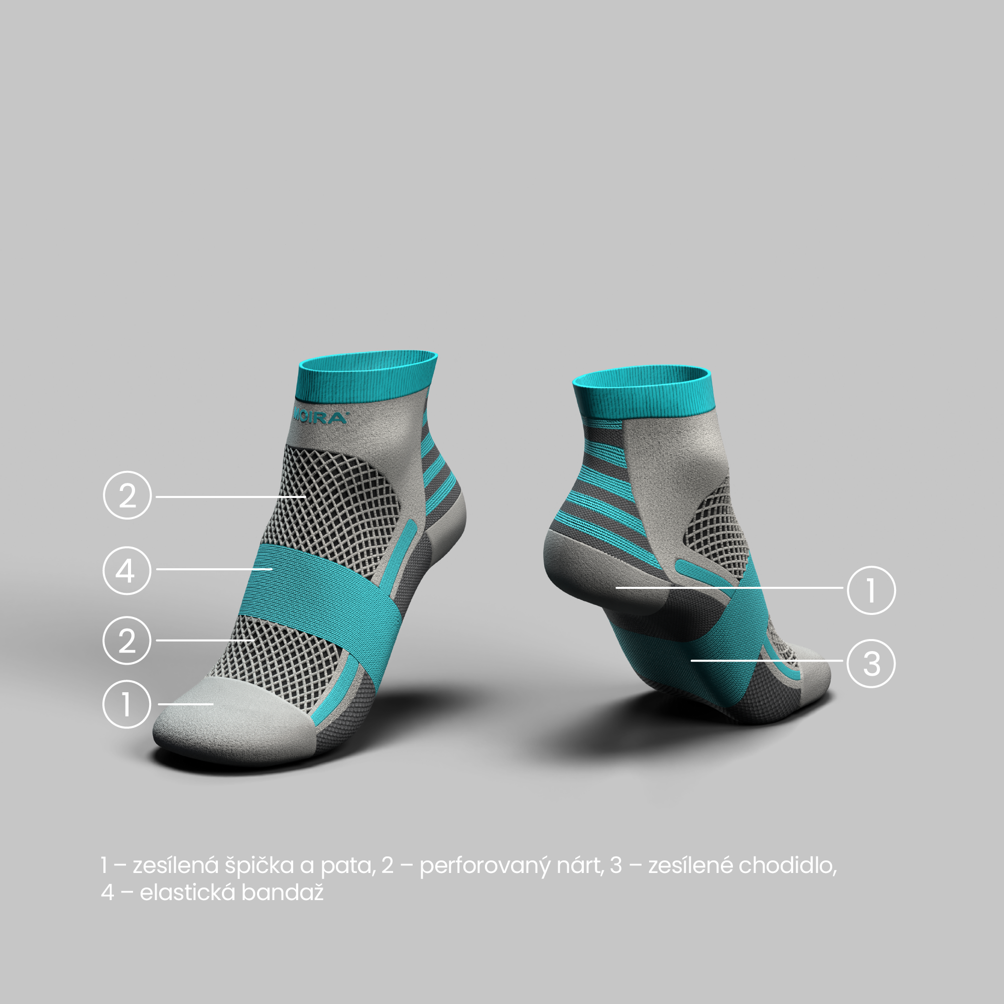 Nohy v suchu, i když jste v jednom kole.Lehká ponožka Cyklo Light se hodí nejen na cyklistiku. Hladká vazba je zesílena na patě a špičce. U kotníku a Achillovy šlachy je úplet zpevněný, aby posílil bezpečnost zranitelných míst. Klenbu podpírají dvě symetrické kapky, které odvětrávají chodidla při každém kroku. Díky symetrii nemusíte rozlišovat pravou a levou ponožku. Nárt až k lemu kryje síťovaná pletenina, která zaručuje skvělou ventilaci. Ponožky skvěle drží díky vyššímu pružnému lemu.